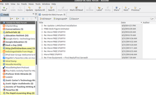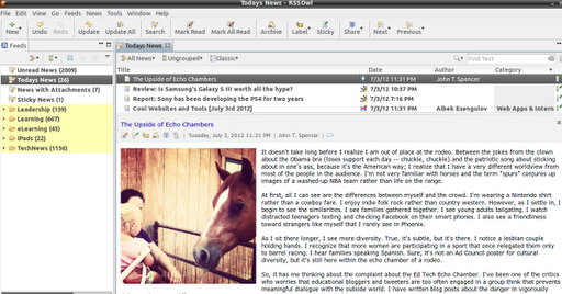 RSSOwl is a free and powerful news feed reader. RSSOwl lets you gather, organize and search news in a convenient, easy to use interface with endless flexibility. It works with Linux, Windows, and Mac operating systems. Download it
