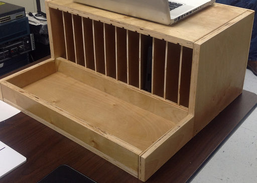 Once you get up to 10-12 devices, whether they are iPads or iPod Touch devices, you’re wasting a considerable amount of time providing support. When you get up to more than 12 devices, you’ll need to invest in a $2500 cart–similar to the one below–that enables the work.