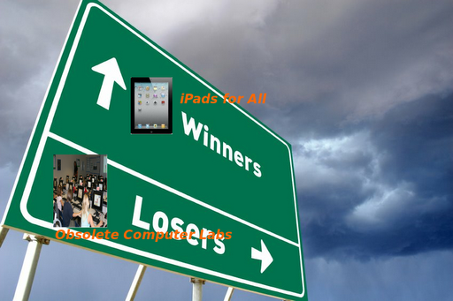 I am not a big fan of computer labs, especially since I [was] just promoted out of one back into the regular ed classroom. I believe students need the tools where there are. I will have spent around $1700 of my own money for tech tools for my students to use this year alone. That isn’t nearly enough. We will spend a lot of time waiting to use them.