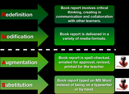 Still, the danger is continuing to use the iPad in the same old way…if we use the SAMR Model, many teachers will start at the substitution level…here’s my remix on that: