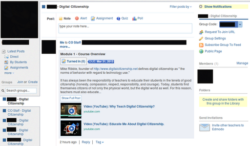 | A quick look at the Digital Citizenship course a colleague and I were developing and sharing with 13 sites. |