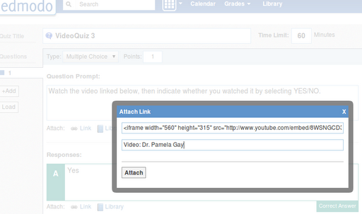 4) When your “students” take the quiz, they will have a link to watch the video, which will pop-up for you.