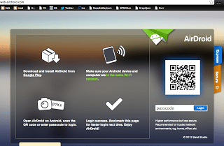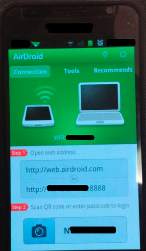 | AirDroid screen on computer browser attempting to connect to Android device |
