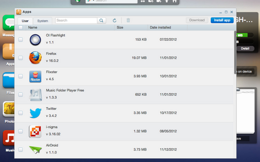 | My Android device App list via AirDroid |