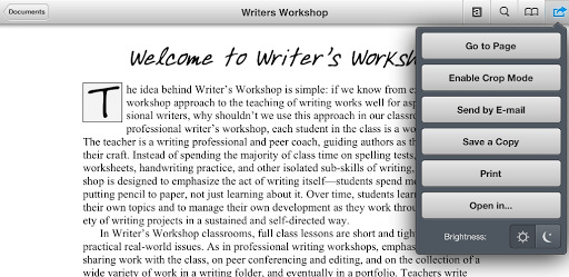 Notice that you have several options…the “Print” button is worthless unless you have an AirPrinter. However, you can choose the Open in… button.