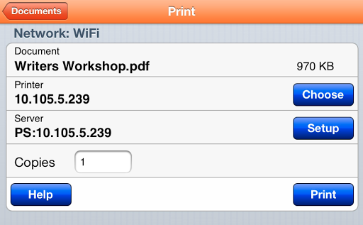 Some time ago, I invested in PrintCentral ($8.99), an iPhone app that works on the iPad. After trying to print with it once or twice, I gave up on it, not realizing I’d missed the key feature. Then, just yesterday, months after I originally purchased it, I tried to print again to satisfy a colleague’s request. Sure enough, PrintCentral worked. Two seconds later, my colleague had purchased the app and was printing as well.