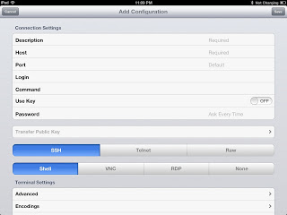 After some quick googling, I stumbled across ZingerSoft’s ISSH iPad app, which offered the opportunity to do just that. Some of the features: