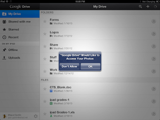 Looking for a quick-n-easy way to store photos/images or, more importantly, videos from your iPad into Google Drive? Look no further than the Drive iPad app which allows you to accomplish both goals!