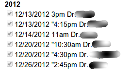 To facilitate tracking of important dates, I also have relied on Evernote.com to organize all appointments. That handy little checkbox enables me to check-off items that have been completed, and I’ve found it more helpful than a calendar.