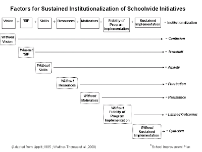 That’s why, when I sat in a campus leadership meeting today, and Shannon (@skfuller) shared this diagram, Factors for Sustained Institutionalization of Schoolwide Initiatives (ain’t that a mouthful), I realized how far off I was about it all.