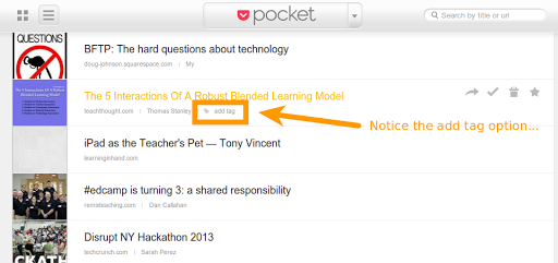 1. Add something to Pocket via your device…you can install the iOS/Android app or get the bookmarklet for your browser.