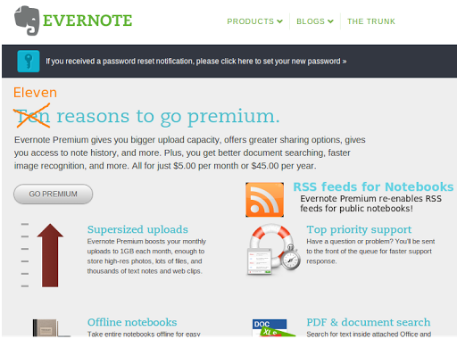 | Modified Premium Evernote ad featuring RSS Feed reinstatement |
