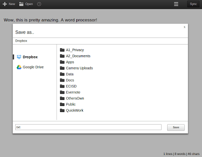 Looking for a simple text editor that I can use on any computer, I stumbled across Writebox, a web-based word processor that is quite simple and integrates with Dropbox and Google Drive. That’s right, you can crank out a short note, copy-n-paste in content, then save directly to Dropbox or Drive, if so inclined. In this blog entry, you’ll find app recommendations for iPad and Android as well!