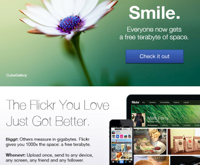 As I heard on NPR today, Yahoo acquired Tumblr. But everyone is hoping that they won’t do to Tumblr what they did to Flickr and Delicious…let them languish into near obscurity or worthlessness. Still, Flickr appears to be trying to do something different, maybe Yahoo’s attempt to say, “Hey, we still care.” But a terabyte of storage…well, who cares? I have 9 gigs of photos, but a terabyte isn’t going to turn me into an avid photographer.