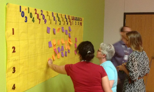 As you can see, the process began quite simply with participants writing about what they wanted to learn on a post-it note and then placing it on the board. These were sorted and organized into similar categories and assigned a room and time slot by Mary Ray (@mray29):