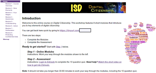 Today, I found myself working on an online course–digital citizenship again–because an accidental deletion had wiped out the original course in Edmodo upon which all copies were dependent. We were trying to replicate the Digital Citizenship course from last year with minimal updates, only that the quiz was reset. I’m reminded of teachers making copies of their lesson plans so they can re-use them. Still, it’s a relief after a busy summer to incrementally update content until it is transformed.