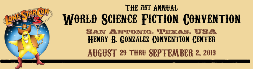 Welcome to the home page of LoneStarCon 3, the 2013 World Science Fiction Convention (Worldcon). On this site you’ll find everything you need to know about the convention, including our guests, program, events, exhibits and of course how to register and where to stay while you’re in town.