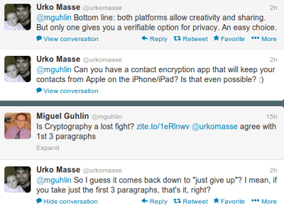 Over the last week or so, @urkomasse and I have had a twitter conversation. In it, he gently takes me to task for advocating the use of iPads in schools. The main critique is that Apple, unlike Android, is probably “in bed” with the National Security Agency (NSA).
