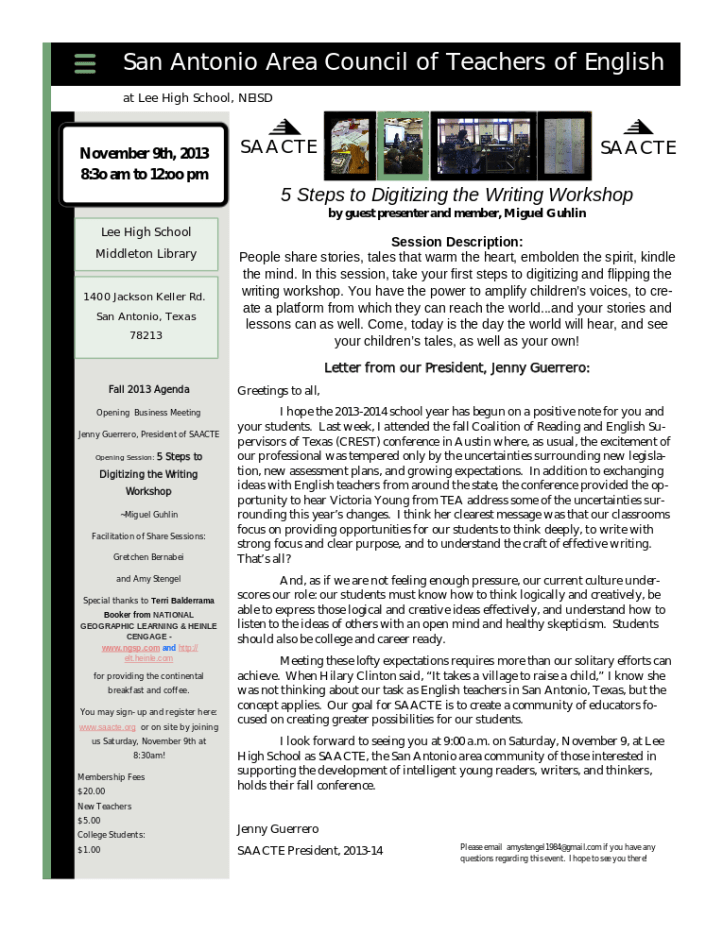 Attend #SAACTE13 Conference – Digitizing the Writing Workshop!