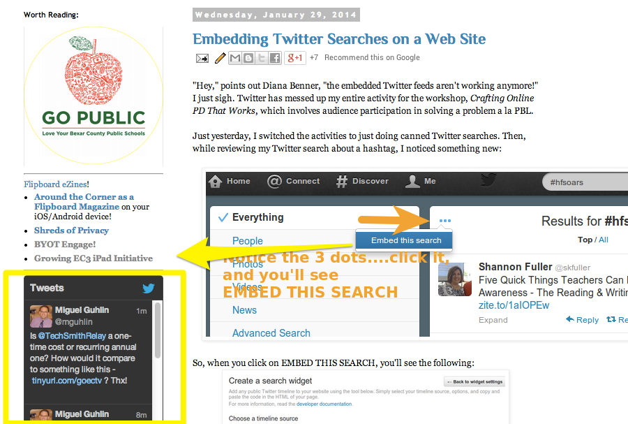 “Hey,” points out Diana Benner, “the embedded Twitter feeds aren’t working anymore!”