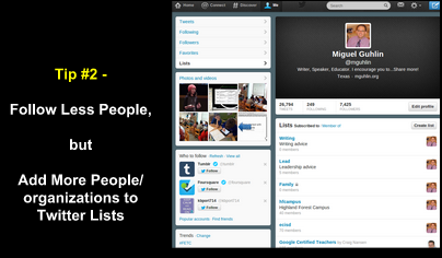 SEPARATING WORK AND “PERSONAL PROFESSIONAL”Over the last week, as a result of that experience, I have made an effort to put my tip to add district staff who may be following my personal account (@mguhlin) on an DISTRICTNAME list. I am trying to keep those I follow down to less than 300, eventually 200.