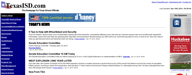 Thanks to TexasISD.com for the visitors…keep up to date with the latest news in Texas education! BTW, that’s my article on 5 Tips to Help with #Heartbleed and Security featured in today’s news on 04/14/2014.