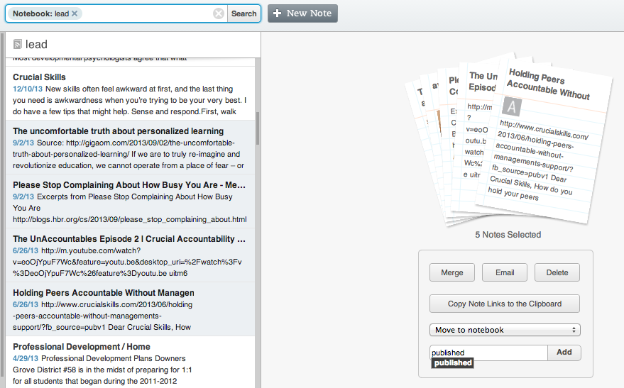 …or do them in bulk by holding down the Ctrl-key and clicking on more than one Note at a time. A window will pop up on the right side of your screen (in the web view of Evernote). Then, add the relevant tag, as shown below: