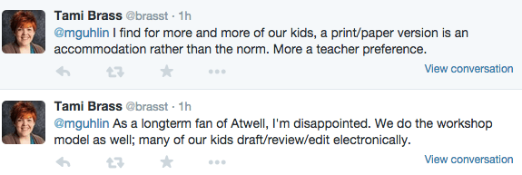 I recently had the opportunity to read The Role of Technology in Nanci Atwell’s classroom, and found much I agree with, but also some points I disagreed with.