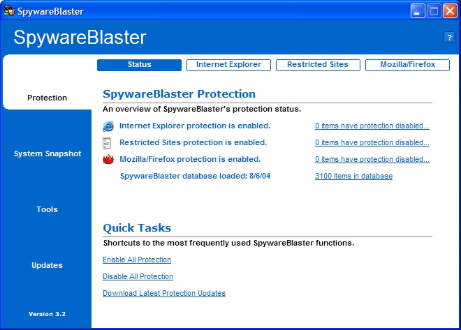 4) Install Spyware Blaster, update, and then apply immunizations.