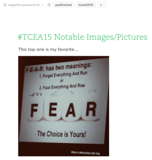 To publish items, I added the “published” tag to auto-publish (I also tagged each entry with “tcea2015” to ensure I could easily share all relevant blog entries. Again, this was one of the easiest TCEA Conferences to keep track of and I’m thrilled at how easy this stuff is. The main benefit of using Evernote is that I have all this great content that I can keep coming back to again and again…and you get to see it because Postach.io enabled me to share it as a series of blog entries!