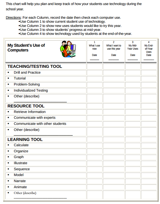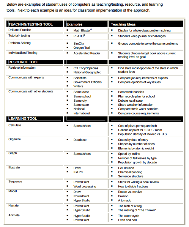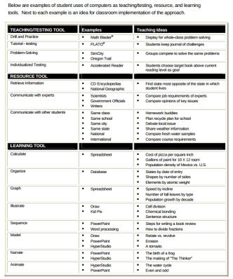 - Choose an existing lesson plan that involves student collection, generation and/or manipulation of data/information. Multiple examples can be found in the Computer-as-aLearning Tool section that follows.