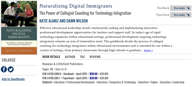 Earlier this year, I had a chance to email a few questions to the authors of Naturalizing Digital Immigrants: The Power of Collegial Coaching for Technology Integration, in particular Dr. Dawn K. Wilson and Dr. Katie Alaniz.