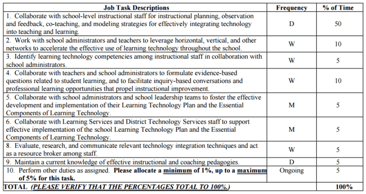 One of the most intriguing job titles I’ve seen for this new position of “technology” or “digital” coach is St. Vrain Valley School District’s Learning Technology Coach. Consider the summary of the position: