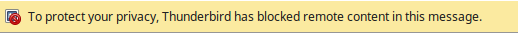 When you receive a message with remote images, Thunderbird will display an alert stating that remote images have been blocked, and the images in the message body will be replaced with simple place-holders (screenshot). Find out more