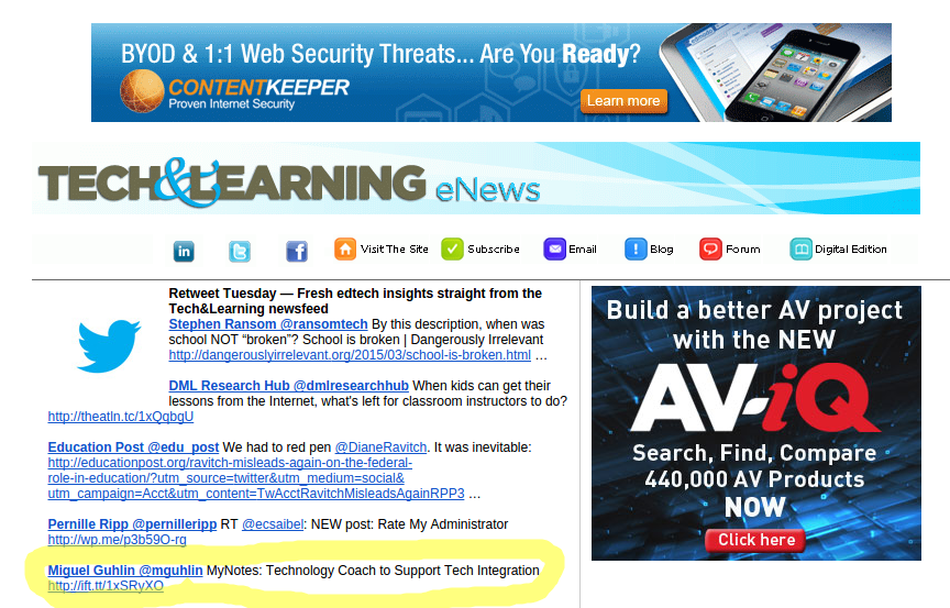 Special thanks to Tech&Learning for featuring MyNotes item regarding Technology Coaching in their ReTweet Tuesday eNewsletter: