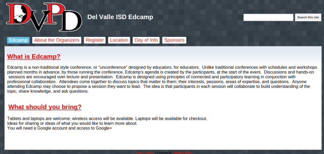 Check out Del Valle ISD’s edcamp site from 2014! They have also setup their own Google Plus Community…Del Valle EDcamp
