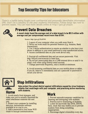 So, here are my top security tips–with acknowledgements to Doretta Walker and David Jacobson–for fellow educators. Tips are divided up into the following 5 categories: