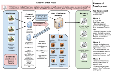 From their Student Information System, school districts can export data about students and staff. But this is not the end of the fun. Down the stream from this lake of data (e.g. SIS), school district technology departments create user accounts that allow people to log into computers (a.k.a. Active Directory) and create email accounts (e.g. GoogleApps for Education, MS Exchange, Office 365).