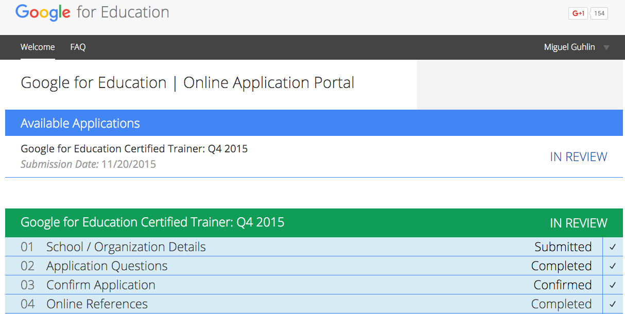 After a long day, I sat down at my home computer and clicked my way to the Google for Education Online Application Portal:
