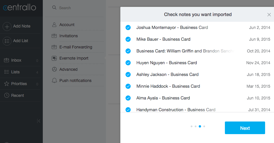 “The most requested feature during my six-years at Evernote was lists-within-lists,” says Heather Wilde, Centrallo‘s newest advisor and former Director of Global Technical Support at Evernote. “The Evernote Centrallo Import Wizard now provides users with the one missing crucial piece in the productivity puzzle in a highly complementary, user-friendly way.”