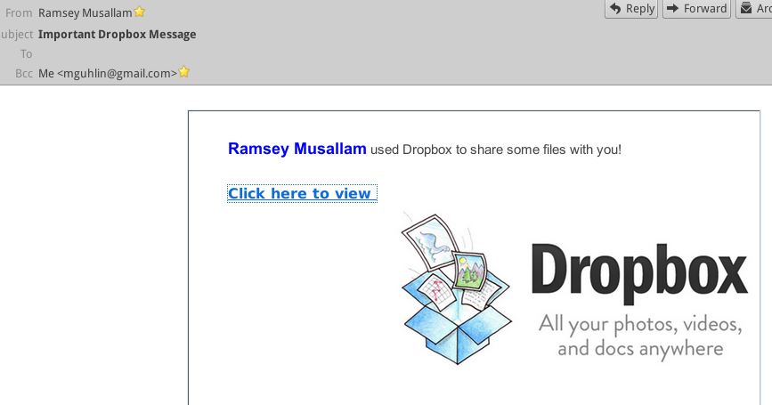 | When you examine the “Click here to view” link, I found a link to a non-Dropbox web site in the UK. |