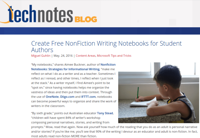 Looking for a way to galvanize classroom writers with digital notebooks? 86% of the reading we do in life is non-fiction. Why not combine proven ways to help student writers engage in content curation and writing? (read more)