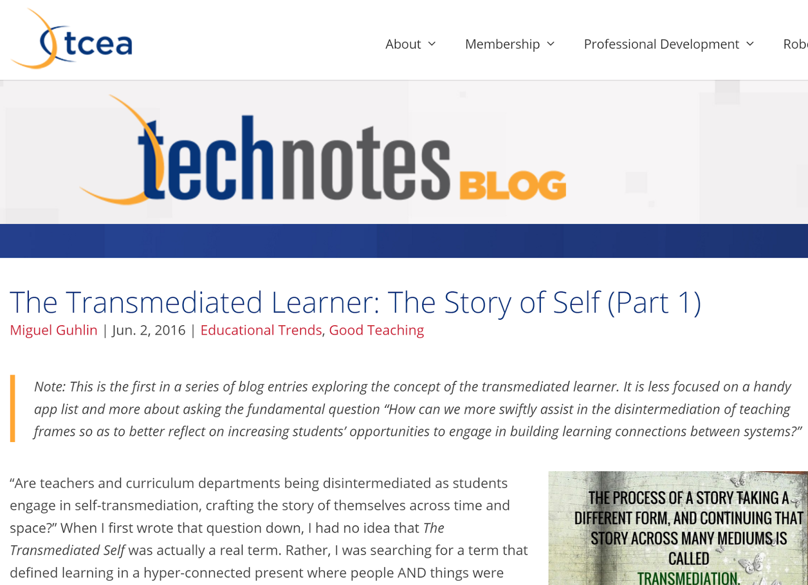 In a storm of reflection and foggy thinking, I had lots of fun writing the first two installments of a new series for TCEA’s TechNotes blog–The Self-Transmediated Learner. The blog series came as a result of two realizations: