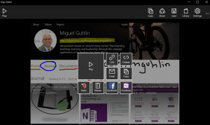 Docs.com enables you to keep organize and share your creations with others. Those creations can include Word, Excel, Powerpoint, and Office Mix, as well as Sways, PDFs, and OneNote notebooks. Once you publish them, anyone can see them and get them. Docs.com also allows you to create “journal” entries that are actually Sways, featuring images, videos, and text.