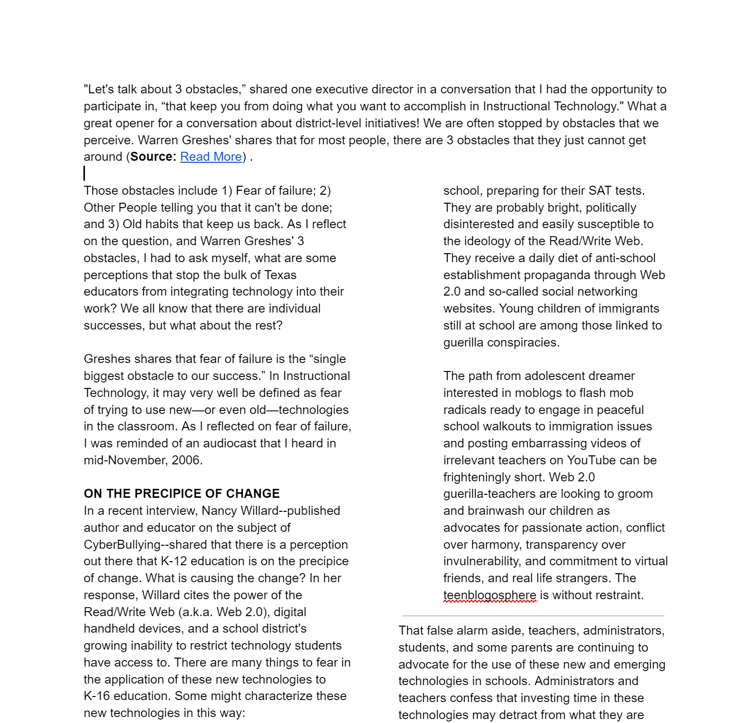 Everything posted on Miguel Guhlin’s blogs/wikis are his personal opinion and do not necessarily represent the views of his employer(s) or its clients. Read Full Disclosure