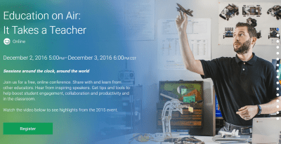 Register today for Education on Air: It Takes a Teacher, a free online conference to connect educators around the globe. On December 3rd, attendees will have access to 100+ sessions featuring renowned thought leaders and opportunities to learn about how Google tools can be used to boost student engagement, collaboration and productivity.
