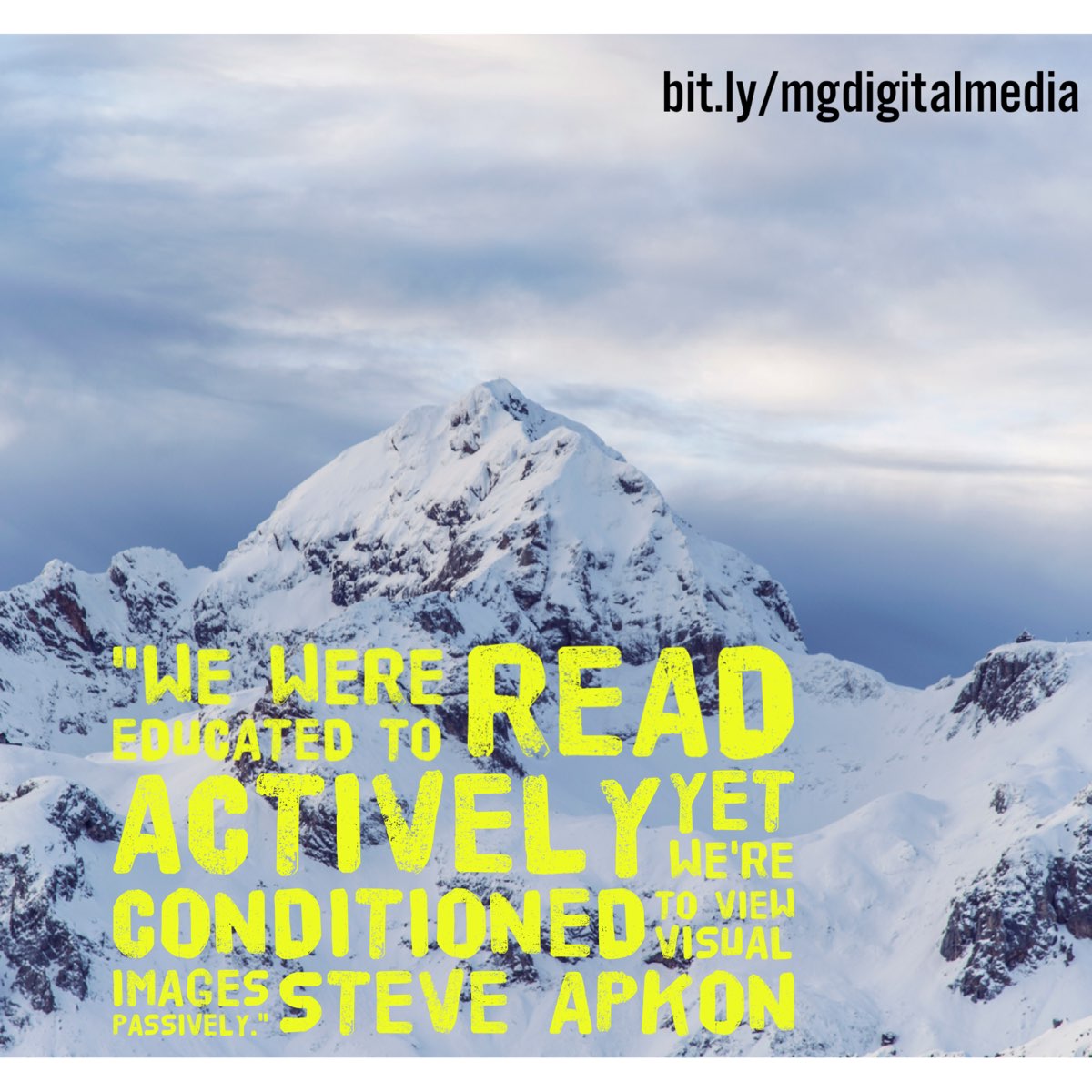 3. “We were educated to read actively, yet we’re conditioned to view visual images passively,” observes Steve Apkon.