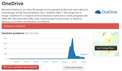 Not surprisingly, a two second internet search on your favorite engine may get you some information. For example, I stumbled on my OneDrive outage pretty quickly!