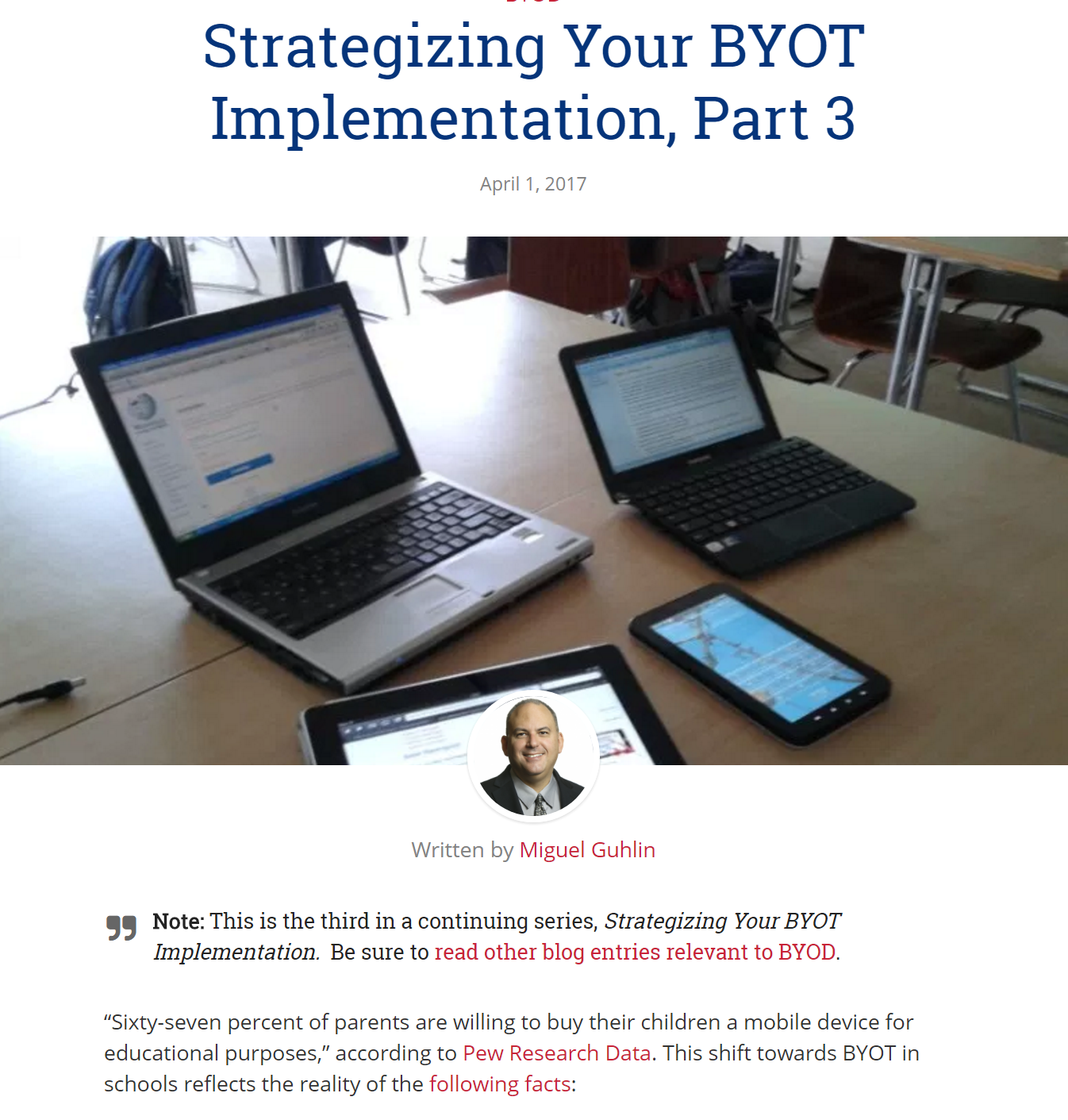 Note: This is the third in a continuing series, Strategizing Your BYOT Implementation. Be sure to read other blog entries relevant to BYOD.