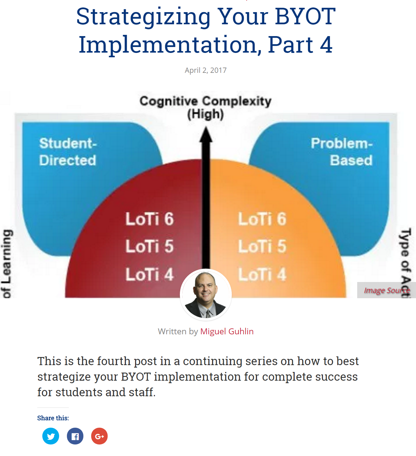 These make it imperative that teachers be supported in their implementation of BYOT instructional methods. “One and done” workshops or webinars are insufficient.